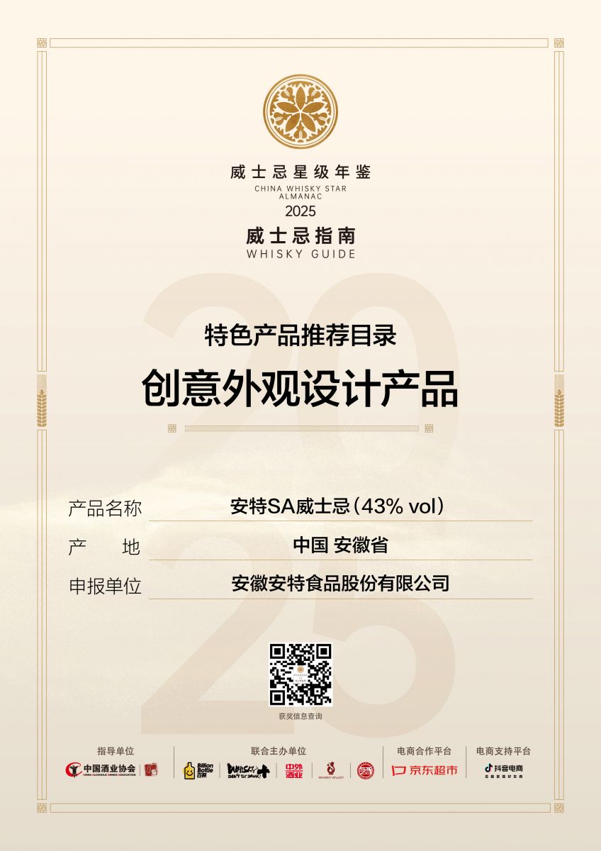 SA威士忌榮獲2025(首屆)CWSA威士忌星級年鑒“創(chuàng)意外觀設(shè)計(jì)產(chǎn)品”獎(jiǎng)項(xiàng)